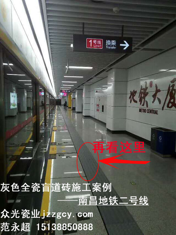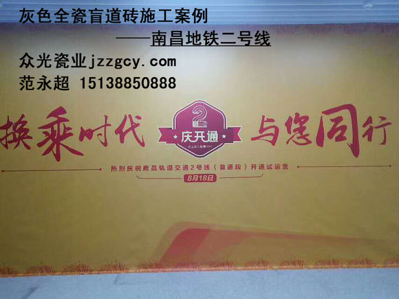 灰色全瓷盲道磚廠家 ——焦作市眾光耐酸瓷業(yè)有限公司,熱烈祝賀南昌地鐵二號(hào)線首通段峻工,8.18進(jìn)入換乘新時(shí)代,開通儀式將在中建五局建設(shè)的地鐵大廈站隆重舉行,眾光瓷業(yè)全體員工祝開通儀式順利舉行!
