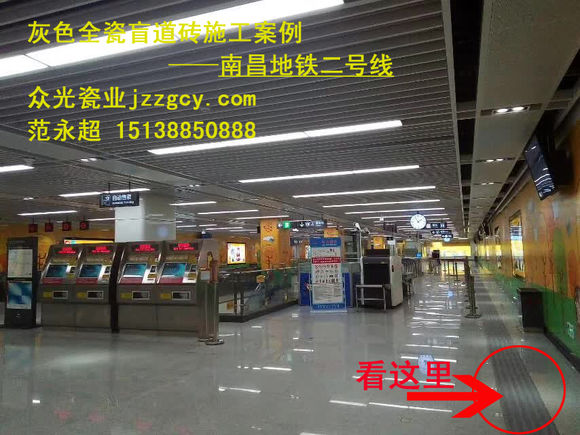 就在今天這個(gè)喜慶的日子里,激動(dòng)人心的時(shí)刻到了,南昌地鐵二號(hào)線在經(jīng)過(guò)建筑工人們近一年的艱苦奮戰(zhàn),已于近日峻工完成,今天就是試運(yùn)日,開通儀式將在地鐵大廈隆重舉行。該地鐵線路施工所使用的盲道磚均采用的是眾光灰色全瓷盲道磚,施工前期使用的大部分規(guī)格為400*400*20,后期有使用少量300*300*20的規(guī)格。眾光灰色全瓷盲道磚不只應(yīng)用于南昌地鐵,北京地鐵、鄭州地鐵、武漢地鐵等國(guó)內(nèi)許多城市的地鐵都采用的是眾光灰色全瓷盲道磚。眾光灰色全瓷盲道磚外觀大氣高雅,陶瓷材質(zhì)防滑耐磨吸水率低,使用易清洗,是石材、塑膠、水泥、不銹鋼等材質(zhì)不可比的。眾光盲道磚是按國(guó)家行業(yè)標(biāo)準(zhǔn)規(guī)定的盲道尺寸規(guī)格生產(chǎn)的,主要用于城市道路及火車站、汽車站、地鐵站臺(tái)、人行道上的鋪設(shè),它是殘疾人指引行走無(wú)障礙的專用設(shè)施。